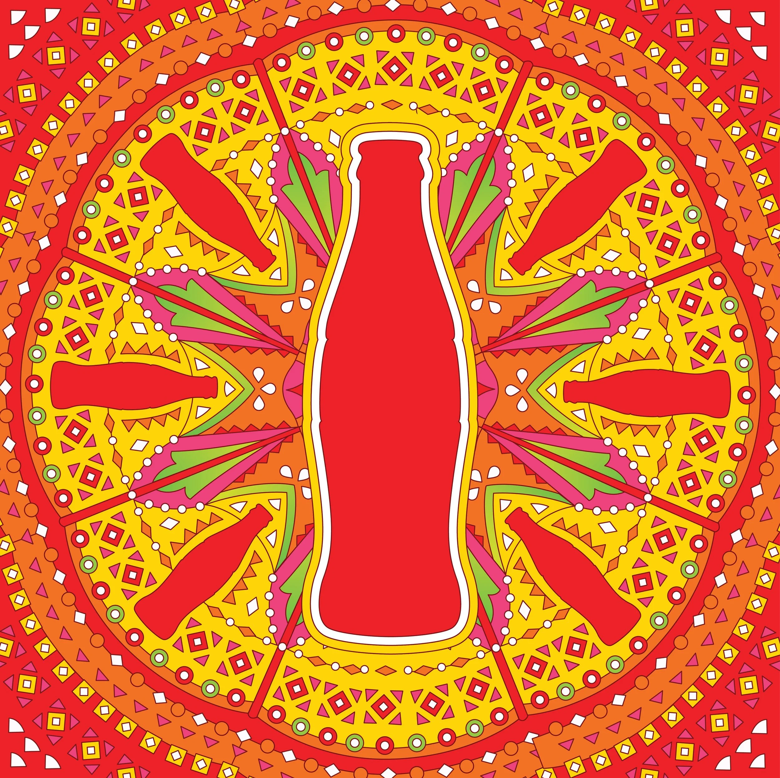 We created a series of bold, colourful brand illustrations for Coca-Cola India celebrating local flavour of the Indian festivals. The idea was to create a bespoke Visual universe and illustration assets which unifies the magic of festive symbolism through patterns, and moments from the festival itself.