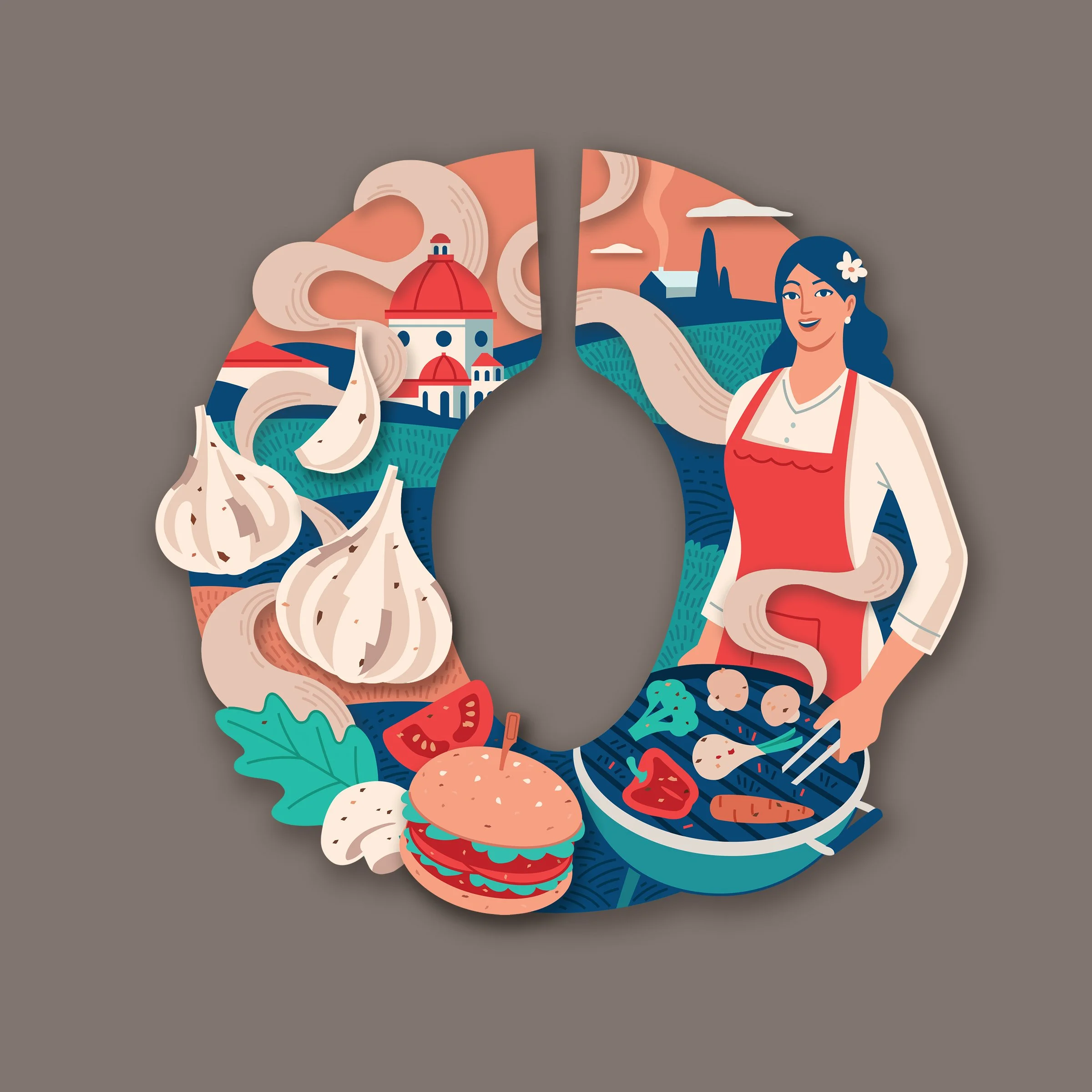 Illustrations are created in a shape of the iconic brand mark creating impactful design. Each illustration depicts the story of the flavours you can make out of the seasonings and cultural inspirations behind each product in a unique way.